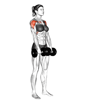 Let the dumbbells hang, palms facing each other, with a slight bend in your elbows.
