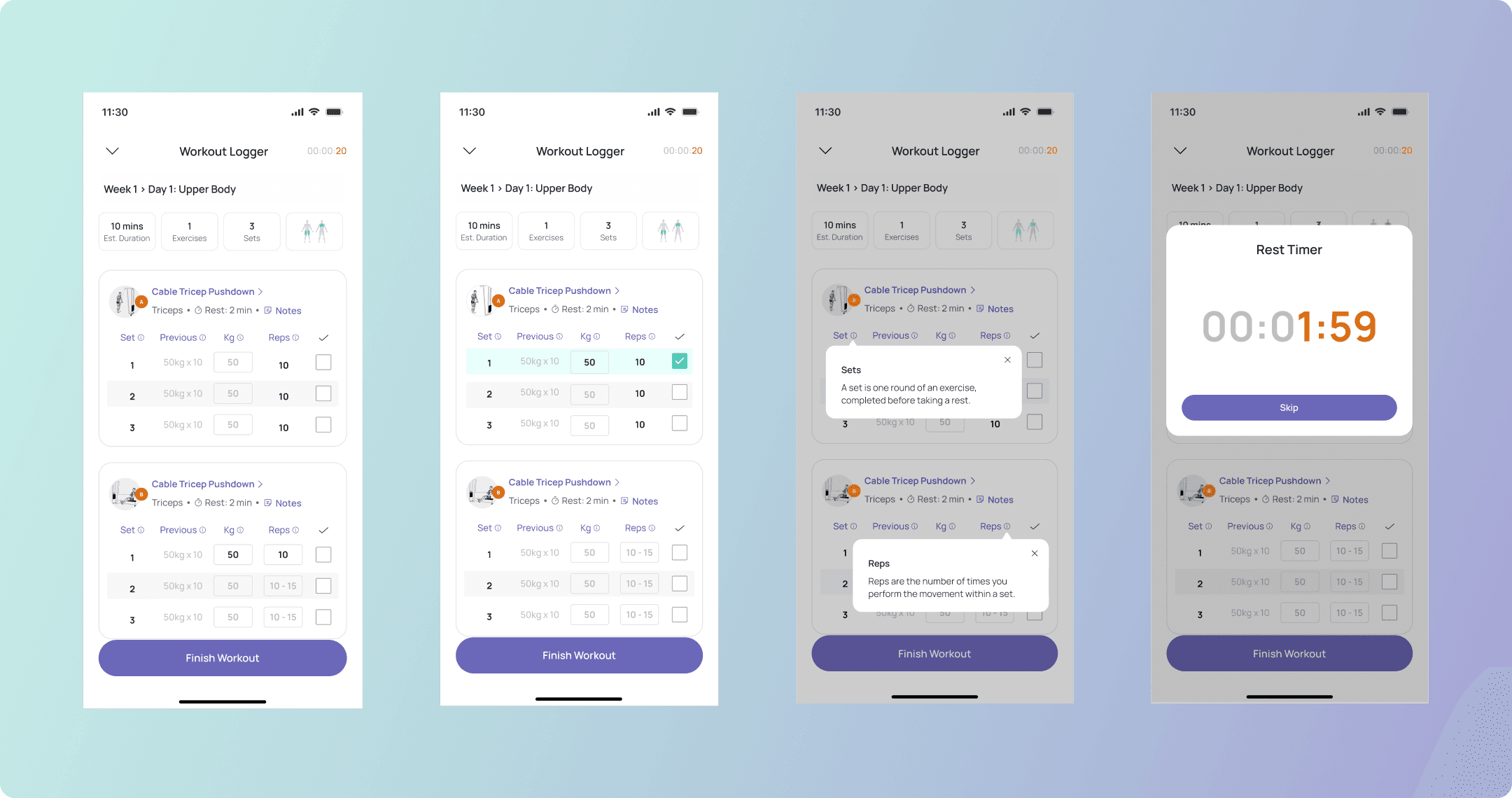 Logging a workout can easily feel like a chore. Our goal was to make it effortless, fast, and motivating.
